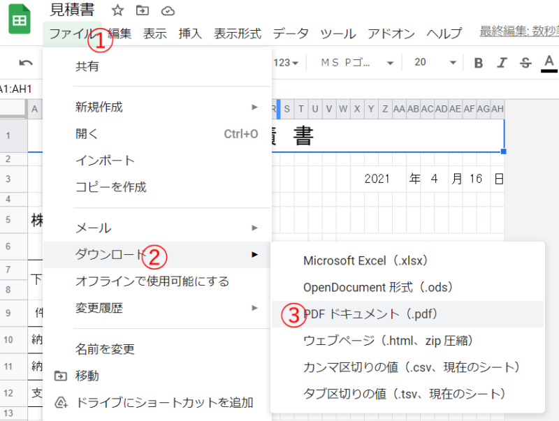 現在では、Googleスプレッドシートを活用している方も多数いらっしゃると思いますので、そちらの方法もご紹介しておきます。